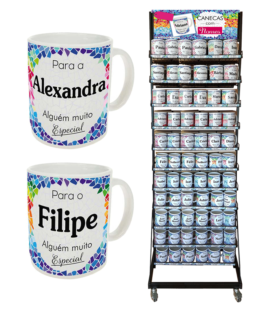 O expositor da coleção Canecas com Nomes foi concebido com cuidado e em detalhe com o objectivo de alcançar artigo do presente atraente eo único e pessoal.