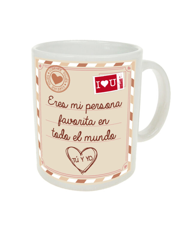 Taza de cerámica con mensaje para enamorados, con el texto “Eres mi persona favorita en todo el mundo”
