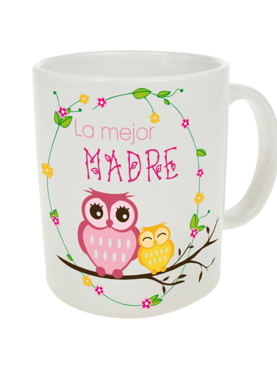 Taza de cerámica con mensaje para madres, con el texto “La mejor madre”.