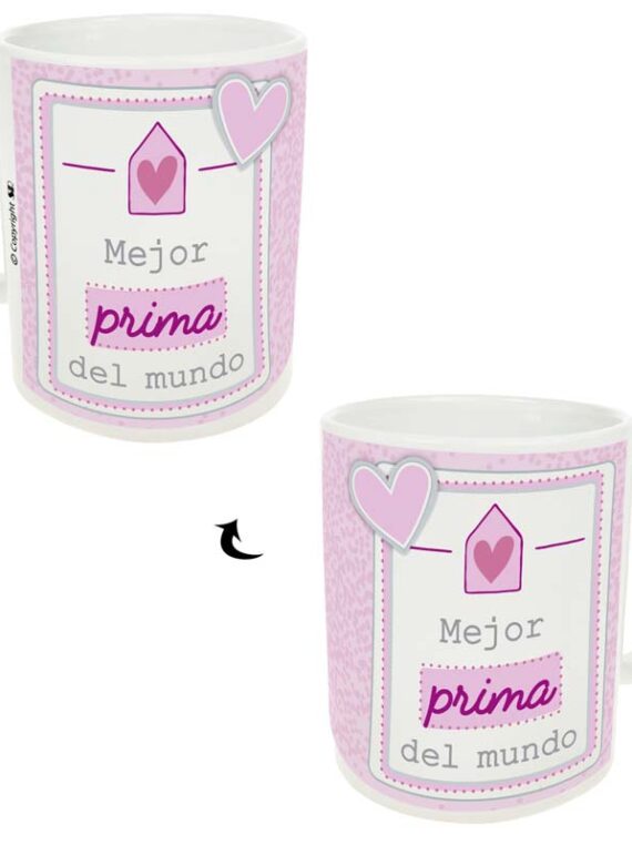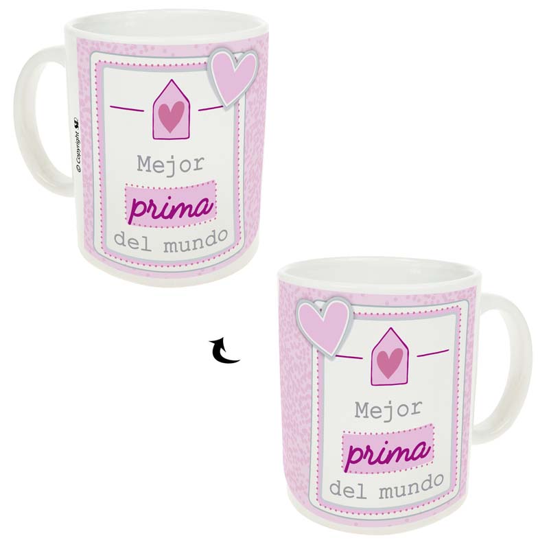 Taza de cerámica con mensaje para familiares, con el texto “Mejor prima del mundo”